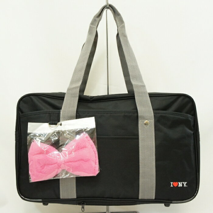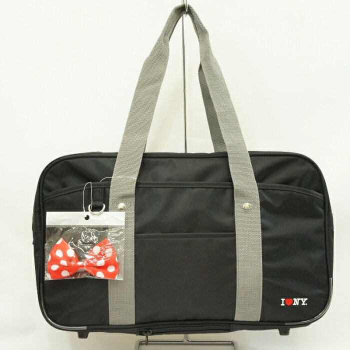 I LOVE NY 14 ナイロン スクールバッグ ブラック 通学バッグ サブバッグ スクールボストン 紺 黒 ハート 軽量 中学 高校 女の子 スクールバッグ 女子 通学バッグ 中学 高 レディース