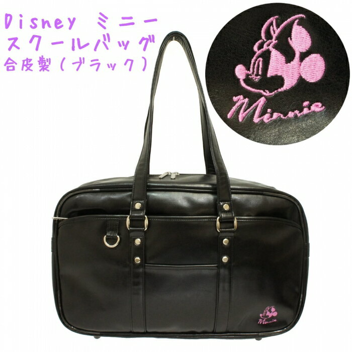 ミニー 合皮 スクールバッグ ブラック スクールボストン ディズニー ミニー 合皮製 黒 通学バッグ レディース 中学 高校 女の子 刺しゅう スクールバッグ 女子 通学バッグ 中学 高 レディース