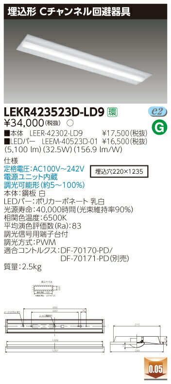 LED LEKR423523D-LD9 (LEKR423523DLD9) TENQOO埋込40形Cチャン回避 LEDベースライト