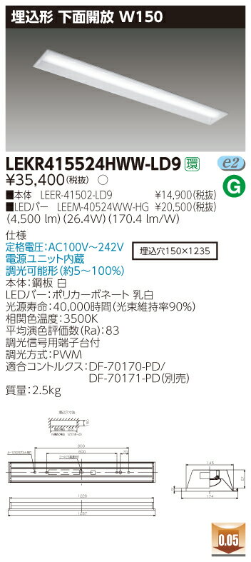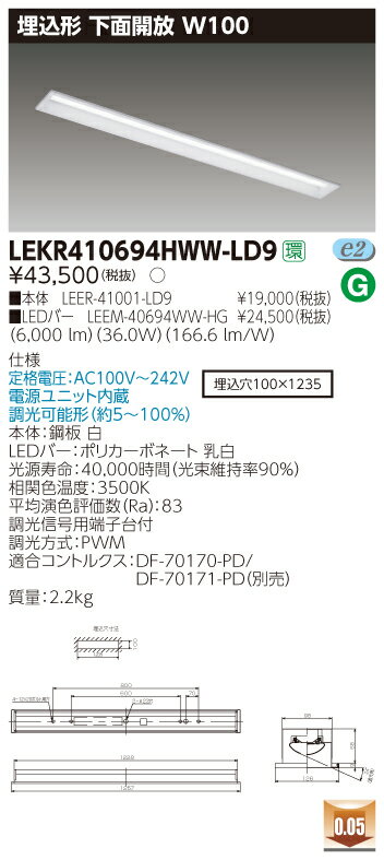 LED 東芝 LEKR819503W-LD2 (LEKR819503WLD2) TENQOO埋込110形W190調光 LEDベースライト 受注生産品