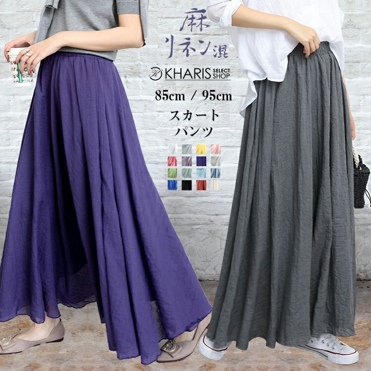 【100円クーポン~8/20 17:59】リネン パンツ レディース 混フレアスカート リネン ロングスカート フレア リネンスカート 亜麻 綿麻混 スカート マキシスカート マキシ スカート 体型カバー ふんわり 麻 [ リネンパンツ / スカート ] 春夏 新作 ダークエンジェル