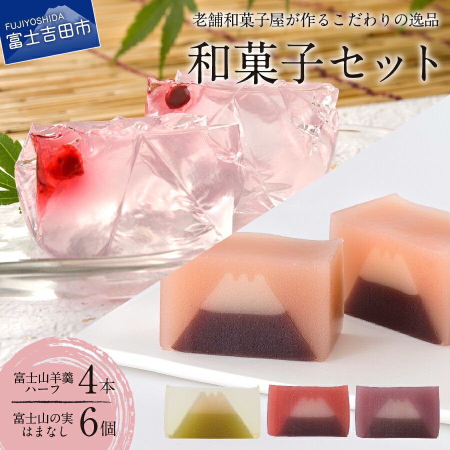 【ふるさと納税】 羊羹 老舗 和菓子 セット 富士山 ようかん ハーフ 4本 富士山の実はまなし 6個 詰め合わせ シャインマスカット もも はまなし ぶどう 菓子 スイーツ ギフト プレゼント 贈答 母の日 桃 ブドウ ゼリー