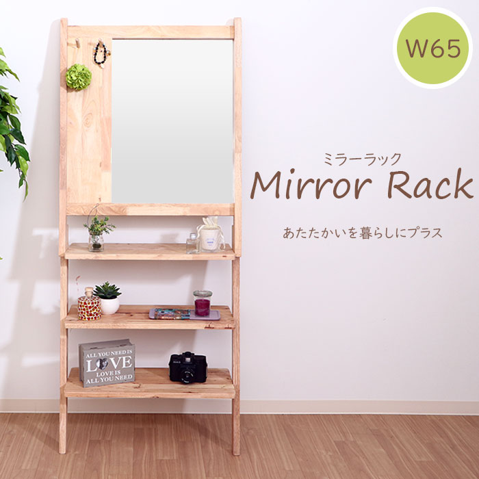 ミラー 鏡 幅65cm 65cm ミラーラック ミラー収納 収納 ベージュ ナチュラル 立て掛け 小物収納 小物 棚付き ミラー付き シンプル 天然木 おしゃれ 人気