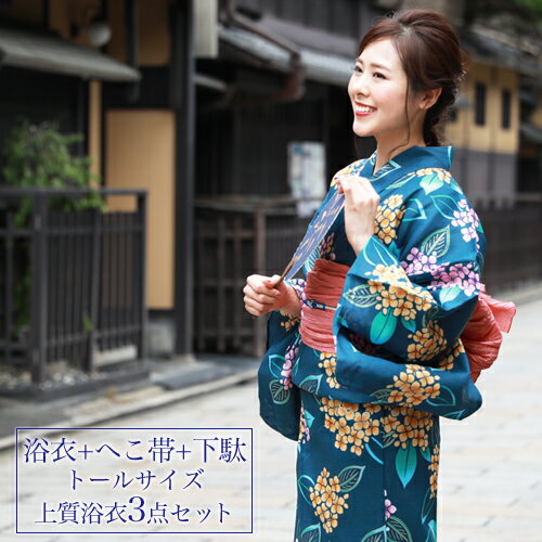 【8/12~16★クーポンで最大半額】浴衣 セット レディース レトロ 浴衣セット 大人 3点セット 紺系 ネイビー 赤 紫陽花 百合 綿 紅梅 ボヌールセゾン 夏 女性用 フリー 【送料無料】【あす楽対応】【浴衣 セット】